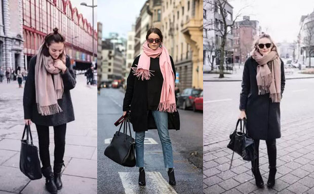 今年粉色非常流行,已經霸占了各種單品,圍巾當然也不例外。棕粉色羊毛圍巾非常適合亞洲人,搭配半丸子頭,顯得格外溫柔。極具氣場的造型也在粉色羊毛圍巾的裝點下添了幾分溫柔,這種粉色和牛仔藍非常和諧,圍巾上的流蘇簡直是吸睛神器。