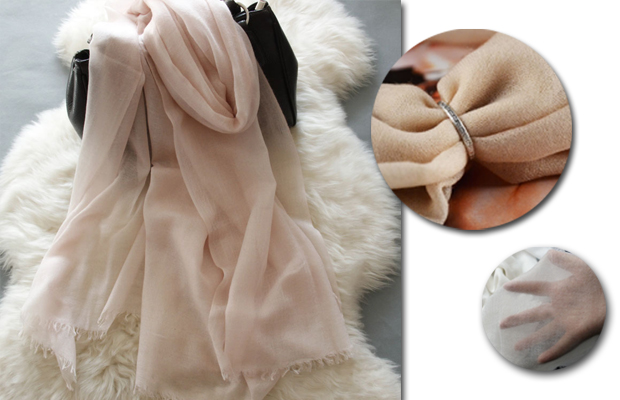 不難看出水溶羊絨圍巾比一般的羊絨圍巾輕薄通透,適用的季節(jié)跨度更大了,在觸感上更是細(xì)膩柔軟美妙的感覺(jué)。